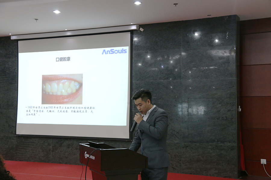 隨后,劉羊孝老師以世界衛(wèi)生組織提出“80歲應(yīng)該擁有20顆牙齒”這一“8020”標(biāo)準(zhǔn),以及國(guó)家衛(wèi)生計(jì)生委提出“健康口腔”——重點(diǎn)關(guān)愛(ài)口腔國(guó)民健康計(jì)劃為切入口,為大家介紹了安科生物在關(guān)愛(ài)口腔健康方面的研發(fā)成果,即安科生物攜手國(guó)內(nèi)頂尖口腔健康團(tuán)隊(duì)研發(fā)推出了一款含有卵黃免疫球蛋白(IgY抗體),能夠精準(zhǔn)解決牙周問(wèn)題的安漱品牌漱口水,并邀請(qǐng)大家體驗(yàn)漱口水產(chǎn)品。