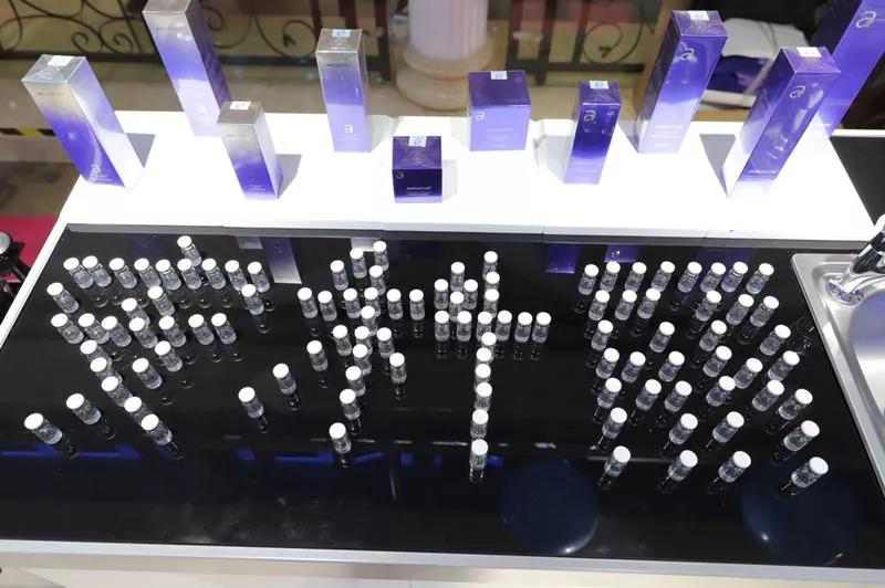 “哇!好可愛!這個小瓶子包裝也太精致了!像藥品,看著更有安全感!”安科麗產品引發了消費者陣陣驚呼,在飽滿地陳列著幾十個SKU的安科麗科學護膚體驗中心前擠滿了前來體驗產品的不同年齡段顧客。