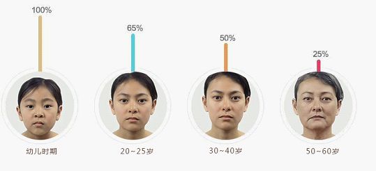 30歲玻尿酸的含量只有嬰兒時期的65%