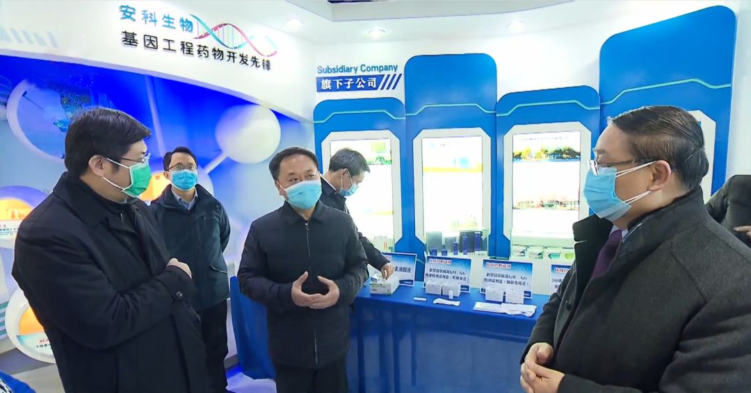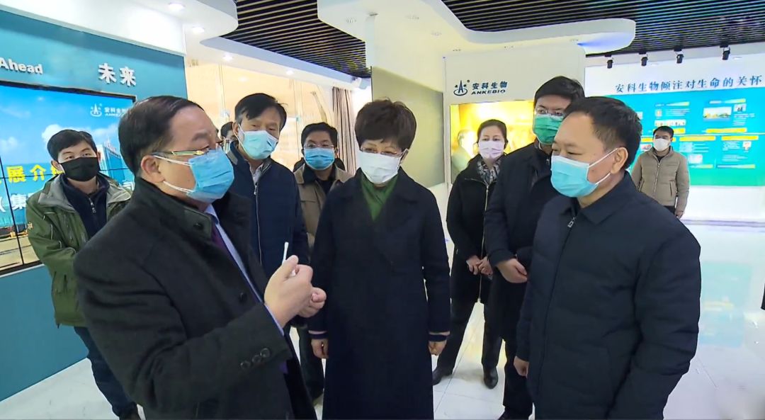 2 月 17 日,安徽省委副書記、省長李國英率省發(fā)改委、省衛(wèi)健委、省科技廳、省藥監(jiān)局有關部門負責同志赴安科生物、合肥大基因中心調(diào)研新冠肺炎疫情防控科研攻關工作。省政府秘書長白金明,合肥市委副書記、市長凌云陪同調(diào)研。